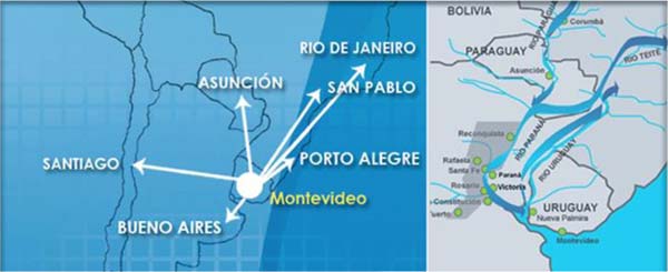 Se encuentra ubicado en la Hidrovía del Paraguay – Paraná - Río de la Plata, que constituye el eje principal de la región que atiende a clientes internacionales. Esto permite una mayor velocidad para el transporte de mercancías entrantes o salientes del puerto, hacia o desde los diferentes países de la región. También tiene acceso a la red ferroviaria uruguaya y regional.